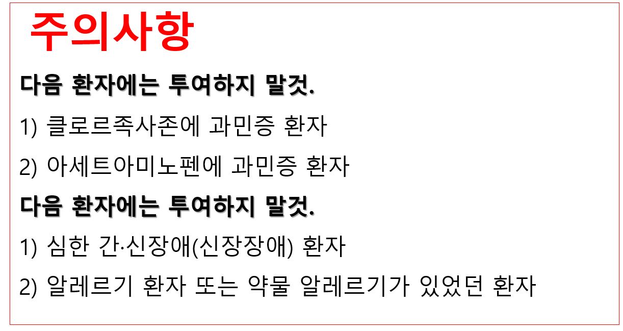 아세트아미노펜이라는 성분은 진통억제작용을 하고, 클로르족사존 성분은 근육을 이완시켜준다고 합니다.